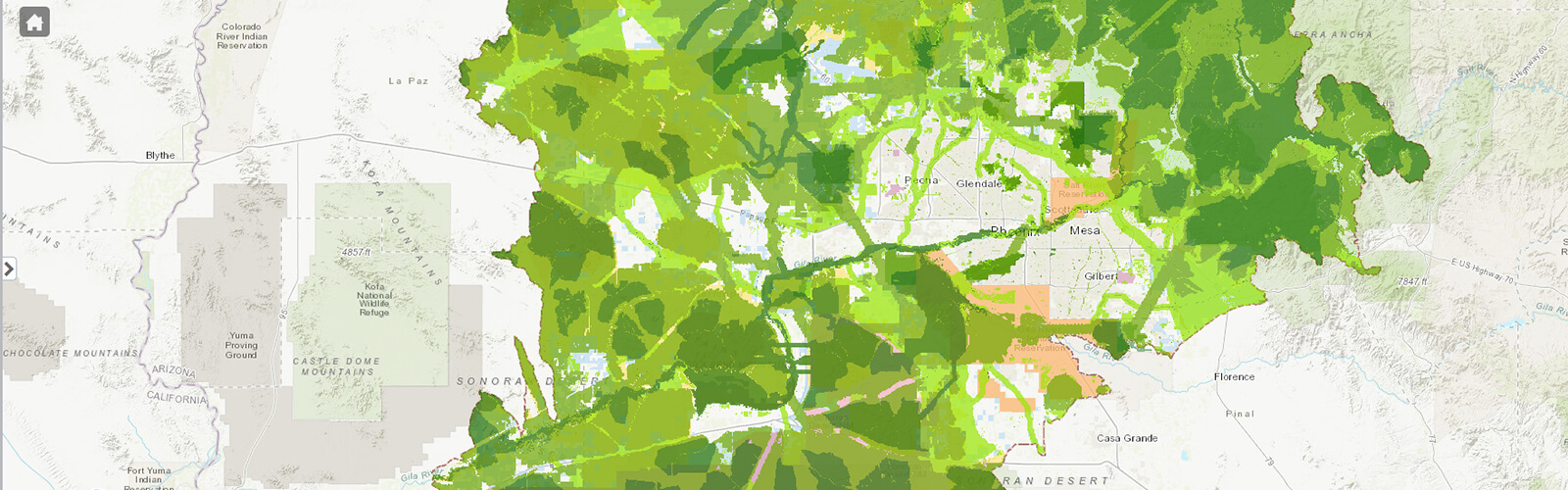 While there are many kinds of data included in the Greenprint, this tool offers particular insight into lands valuable for habitat connectivity, protecting water resources, and addressing both heat vulnerability and equitable access to open spaces. Designed collaboratively with the Trust for Public Land, the Nature Conservancy and Sonoran Institute.